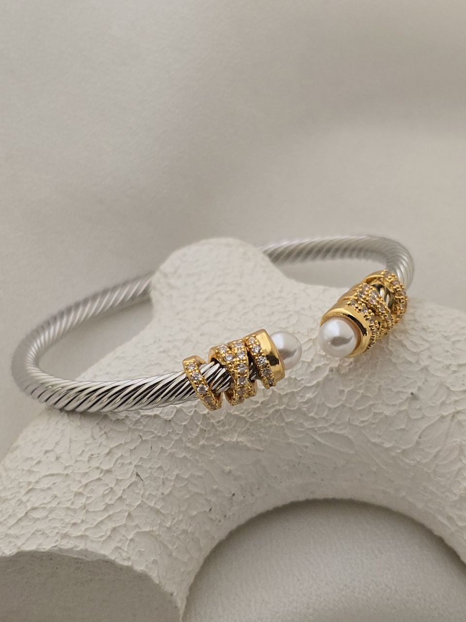 دستبند بنگل یورمن مرواریدی طرح طلا