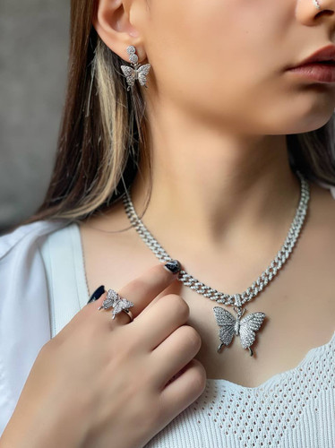 نیم ست پروانه نگینی (انگشتر و‌ گردنبند) سیلورناموجود