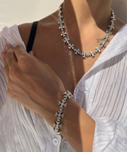ست دستبند و‌ گردنبند کروم هارتز آبکاری نقره