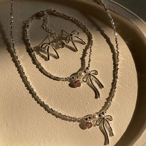 نیم ست پاپیون مینیمال آبکاری نقره