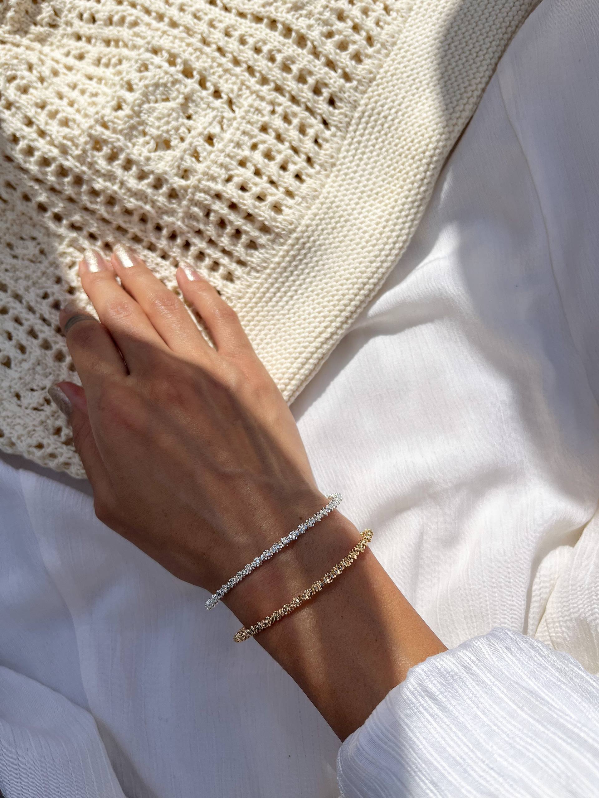 دستبند بنگل خاویاری پهن و باریک آبکاری